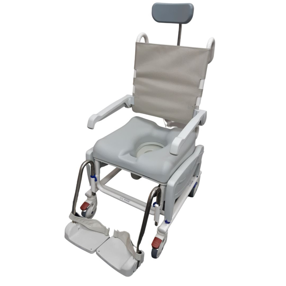 • A tilting mobile chair that can be used for showering, for toileting and for moving the user from one room to the bathroom with the assistance of their carer.
